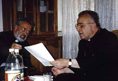 Ernst L. bespricht mit Bischof Marko Sopi (r.)