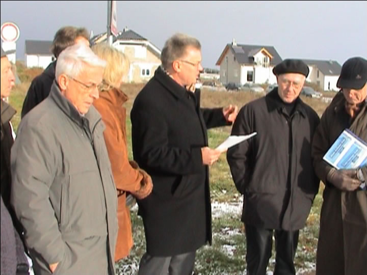 Der Bürgermeister von Limburg Martin Richard (CDU) (3.v.r.) nimmt den Abschluss der Erschlie - ßungsmaßnahmen zum Anlass, die Straßenbe - nennung vorzunehmen.