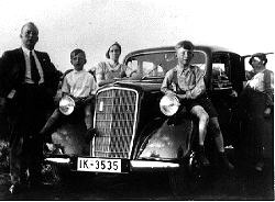 Franz Leuninger mit seiner Familie bei einem Ausflug. Das Auto erleichterte Kontakte mit Mitgliedern des Widerstandes im ganzen Reichsgebiet.