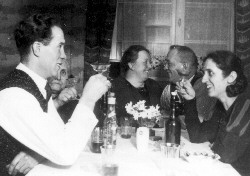 Franz Leuninger mit seiner Gattin Paula, seinem Bruder Georg und dessen Frau Gertrud (im Vordergrund) wohl bei einer Silvesterfeier in Breslau. |