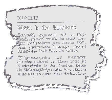 Verlags-Pater Tauscher hält sogar einen Rüffel aus Rom nicht für ausgeschlossen. Bischofs-Referent Böckenförde auf die Frage nach Pressionen aus Rom: "Für diese Frage ist der Bischof nicht zu sprechen."